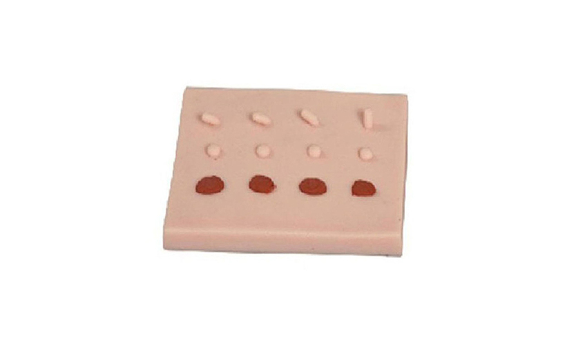 皮肤常见病变处理练习模块包含3种皮肤常见病变:皮赘、皮肤痣(痣细胞痣)和(皮)脂溢性角化病。该产品是初学者提高外科基本操作技术的优先练习途径,是临床外科手术缝合术操作训练常用的教具之一。功能特点:■ 每个模块包含三种病变模型:皮赘、皮肤痣、皮脂溢性角化病。可进行皮赘剪除术、皮肤痣切除术、皮脂溢性角化病刮除术等基本技术训练;■ 主要应用于外科局部小手术的操作训练;■ 尺寸:自然大小;■ 材质:PVC材料;