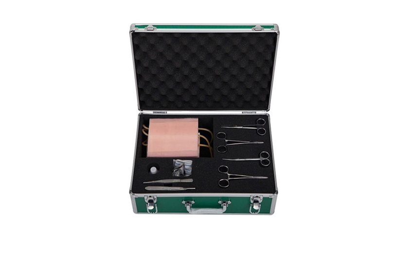 功能特点:■ 该产品具有皮肤和皮下组织,分层清晰,组织张力和弹性真实,可进行外科皮肤切开、血管分离、打结、结扎、止血、剪线、缝合、拆线等外科操作训练。每款模型有粗、细血管,可反复进行多次分离、结扎、止血练习。模块废弃后可更换。该模型是初学者提高外科缝合技术基本操作的练习途径。模型由PVC塑胶材料,经模具浇模工艺制成,具有形象逼真、操作真实和经久耐用等特点。