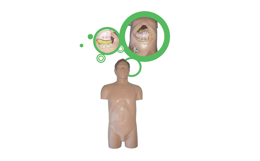 本产品可以重复进行外科手术,从而实现以培养医学生外科手术技能为重要目标的教学模式,为医学生提供一种能进行多种外科手术操作的教学示教及手术实习模型。 在仿真人体模型上设有方便更换的手术局部腹部分层结构模块及仿真人体器官、病变,使医学生如同在真实病人身上“动手术”。可进行切开、止血、剥离、结扎血管、切除、吻合、缝合、换药等,从而培养医学生的外科手术实践技能。可进行阑尾切除术、胆囊切除术、胃大部切除胃空肠吻合术、左腹股沟斜疝修补术及脾切除术等十余种手术示教及技能训练。
