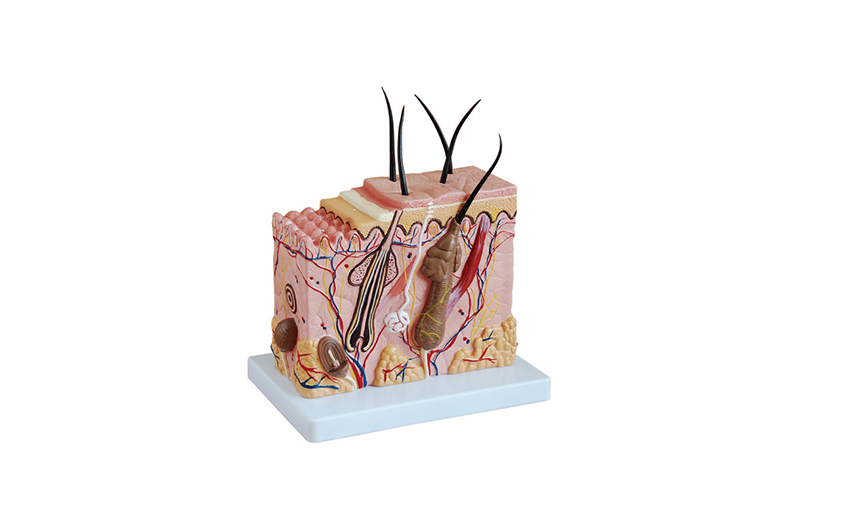 本模型显示了不同层面的人类皮肤层次及毛发结构,