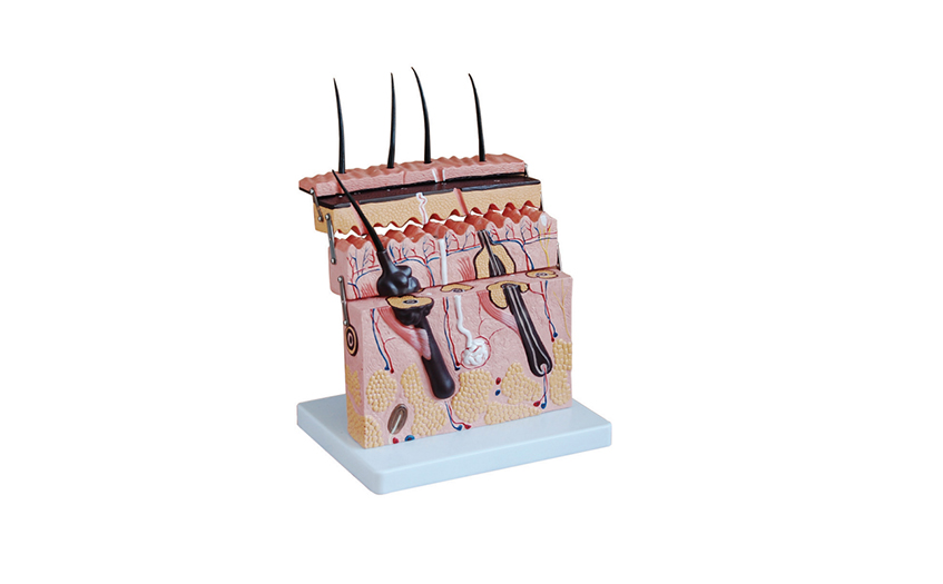 本模型显示了皮肤的不同层次,用于学习头发、汗腺、皮肤感觉