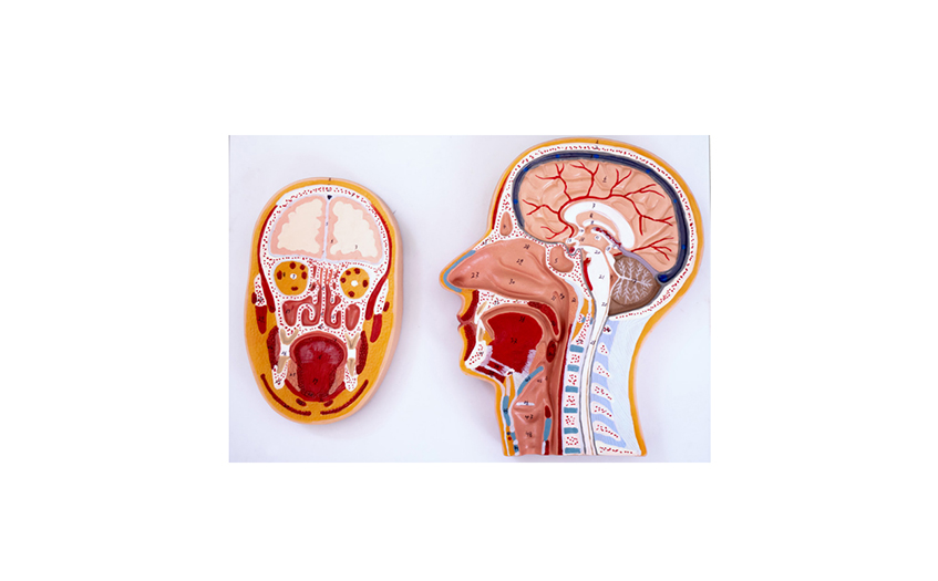 本模型自然大,1 部件,置于底座上;头部额状切 ,
