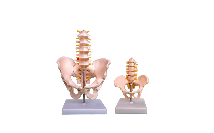 本模型由髋骨、骶骨、尾骨及 5 节腰椎组成,有底座。
